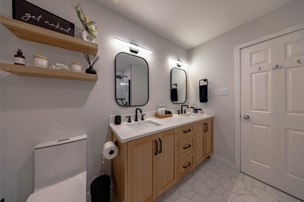 In this blog, we’ll share the details on types of vanities, materials, storage options, measurements, plumbing considerations, and provide our top recommendations! Continue reading for your complete guide to bathroom vanity selection from your top local bathroom experts.