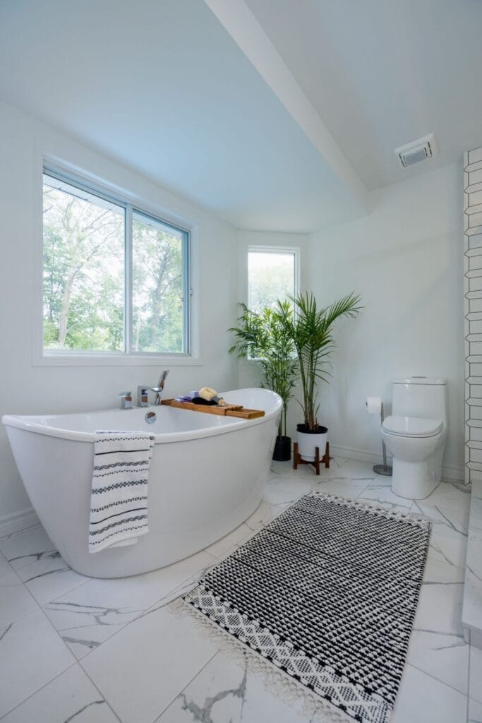 Your bathroom takes a step closer to feeling like a spa with the addition of natural vegetation. This could a vertical garden to save space or a humidity loving plant like a Prayer Plant to bring nature inside. More than just spa-like decor, plants can assist in improving air quality and humidity control.