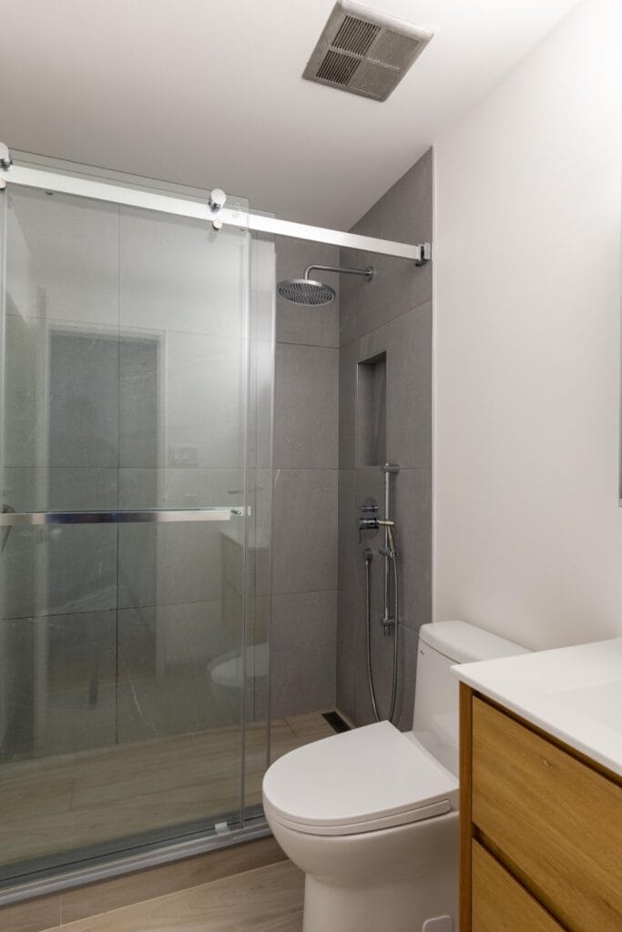 The space was tight and could not be expanded. Being a condo unit, the only proper way to build a safe, long-lasting shower was a full gut renovation. Comfort and usability were the priorities, but that didn’t mean sacrificing appearance. This project demonstrates that safety and good design don’t have to be mutually exclusive.